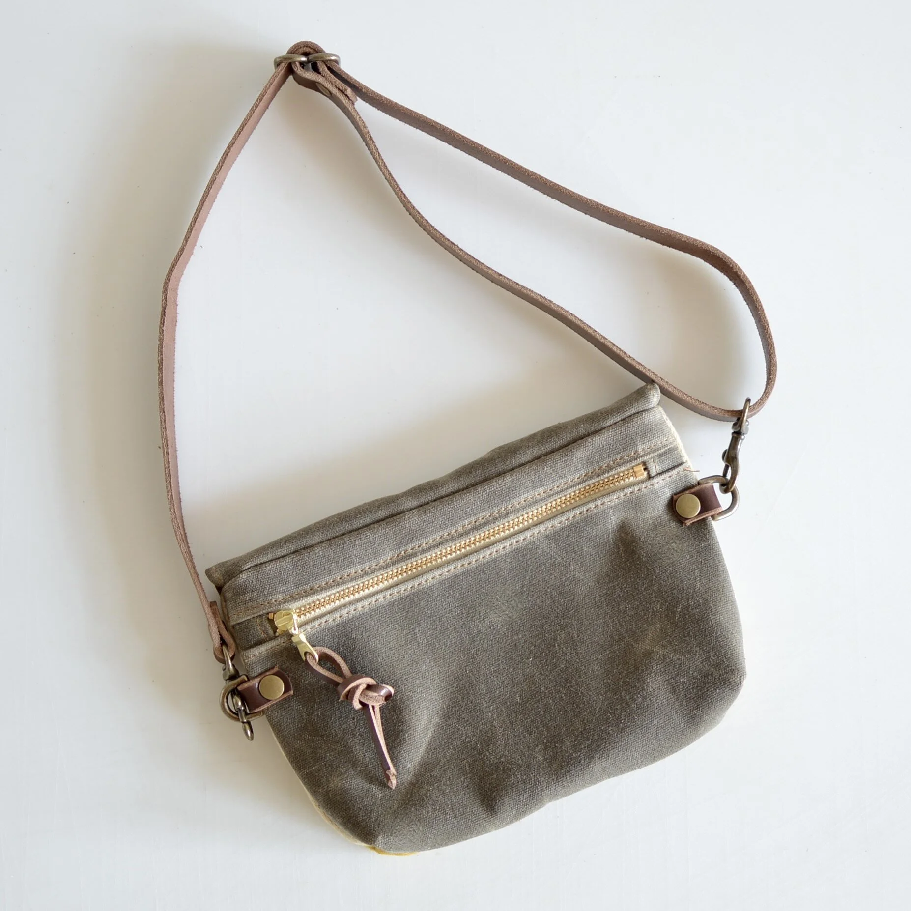 Exterior is made with brown waxed canvas complimented with Pendleton® Wool fabric. Interior is a khaki brushed cotton.