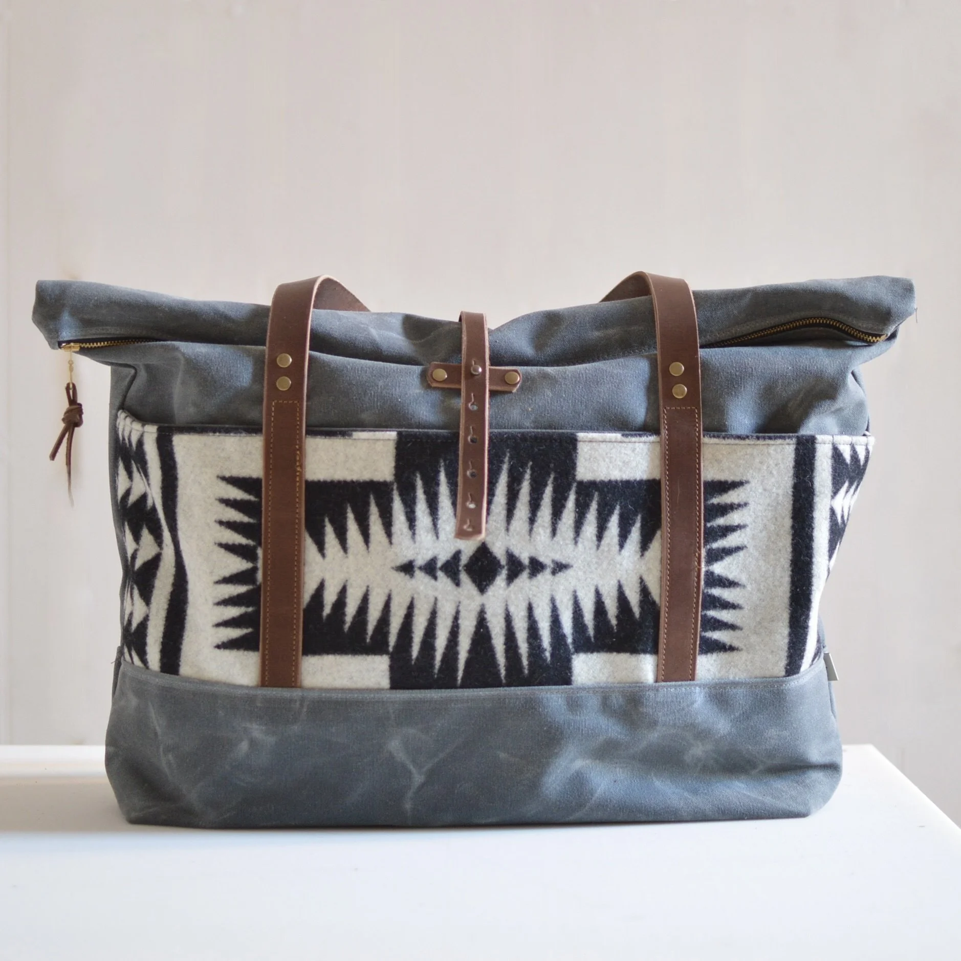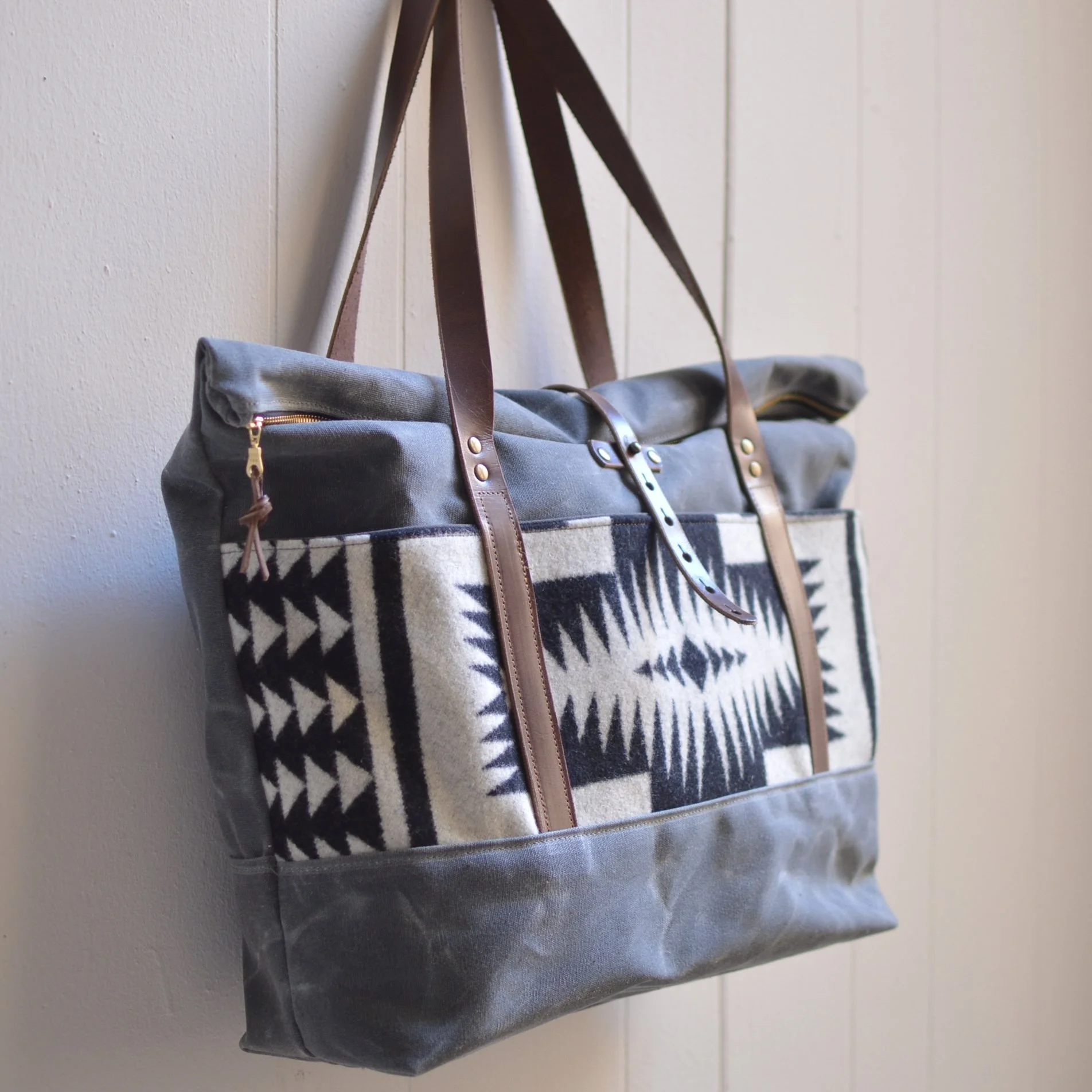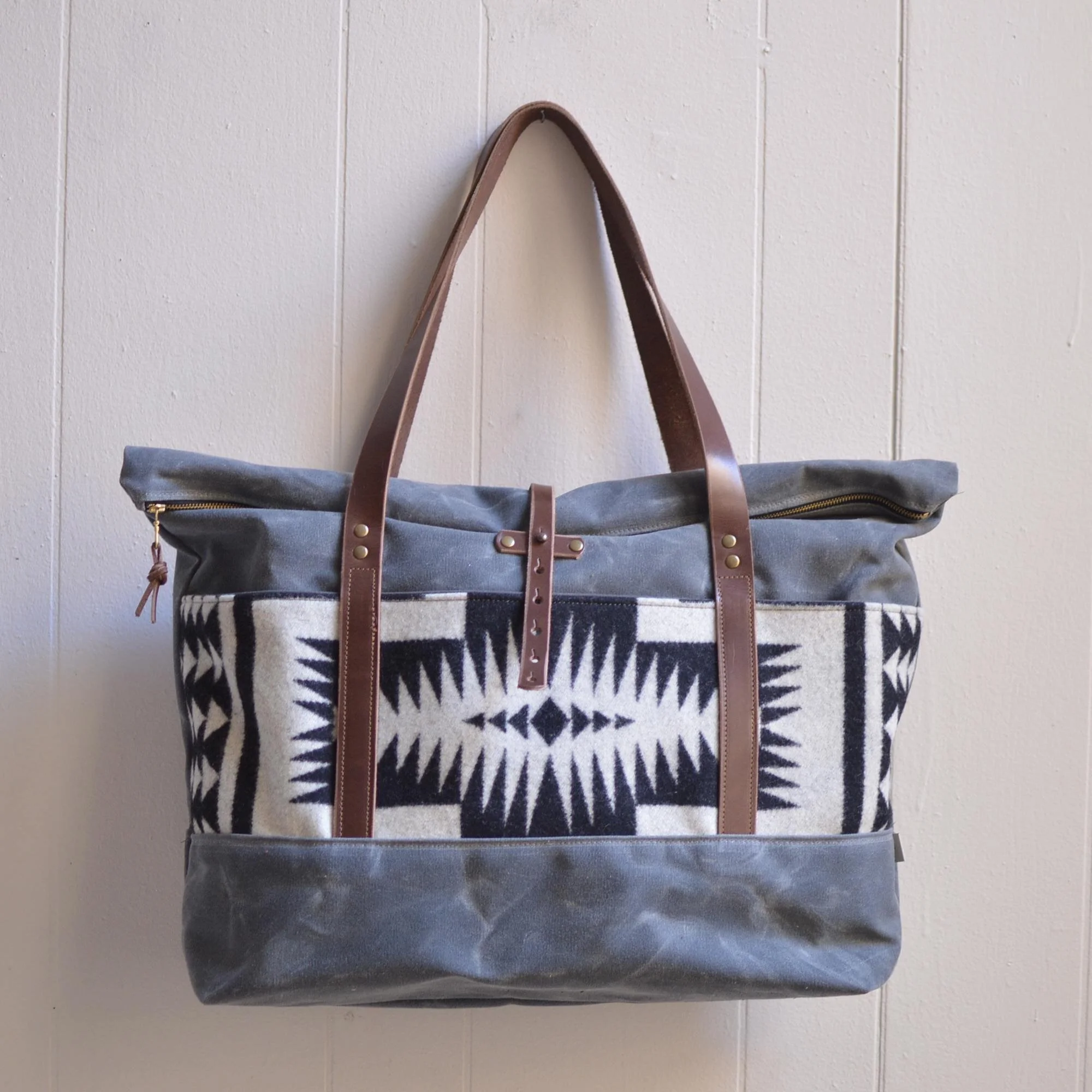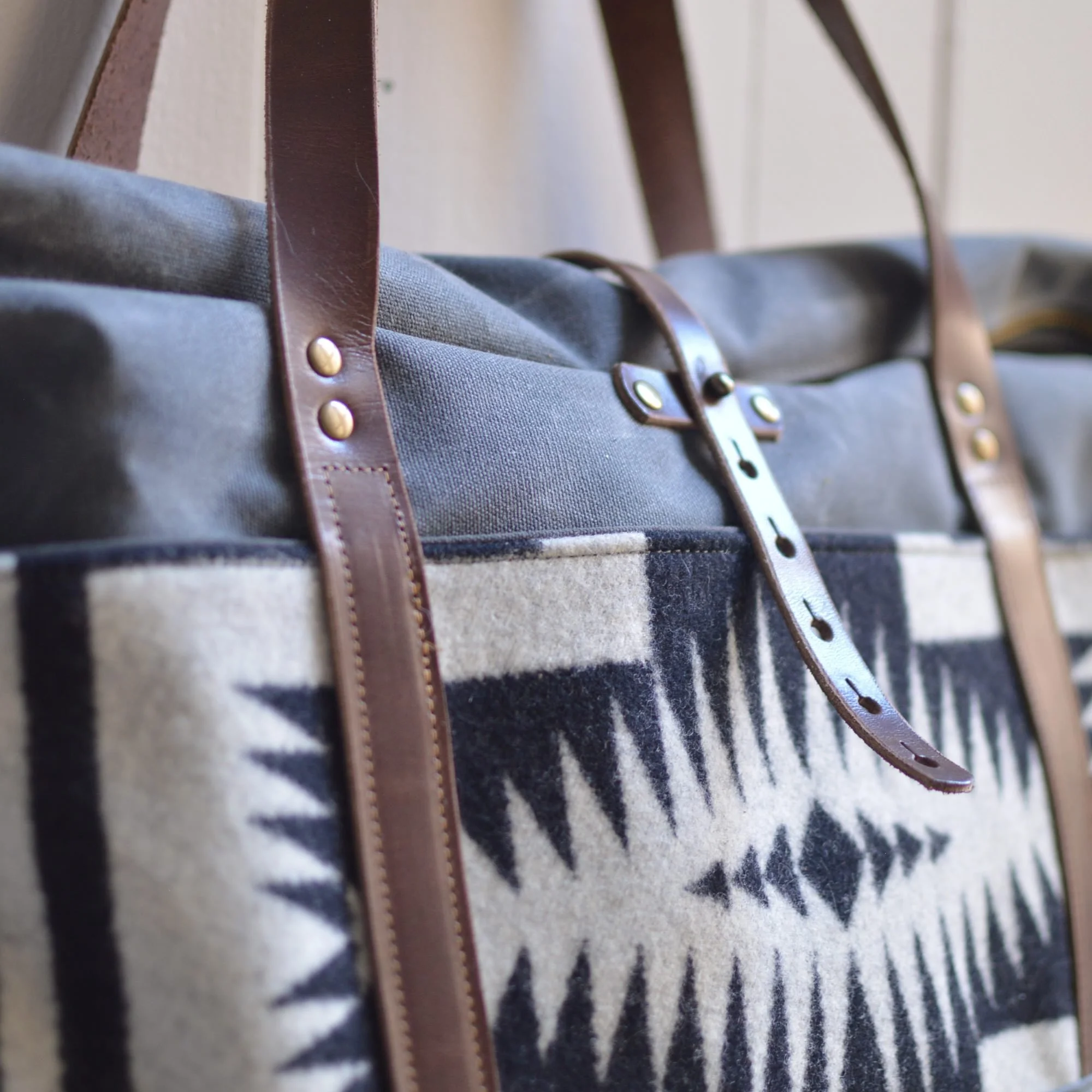 Made with a 14 oz waxed canvas, Pendleton® Wool Fabric, 7 oz Latigo Leather, and lined with a brushed cotton.