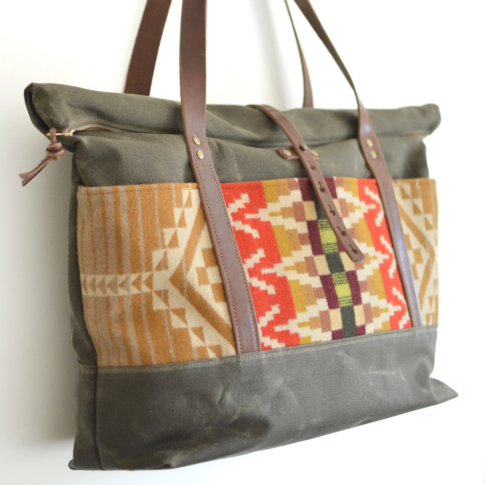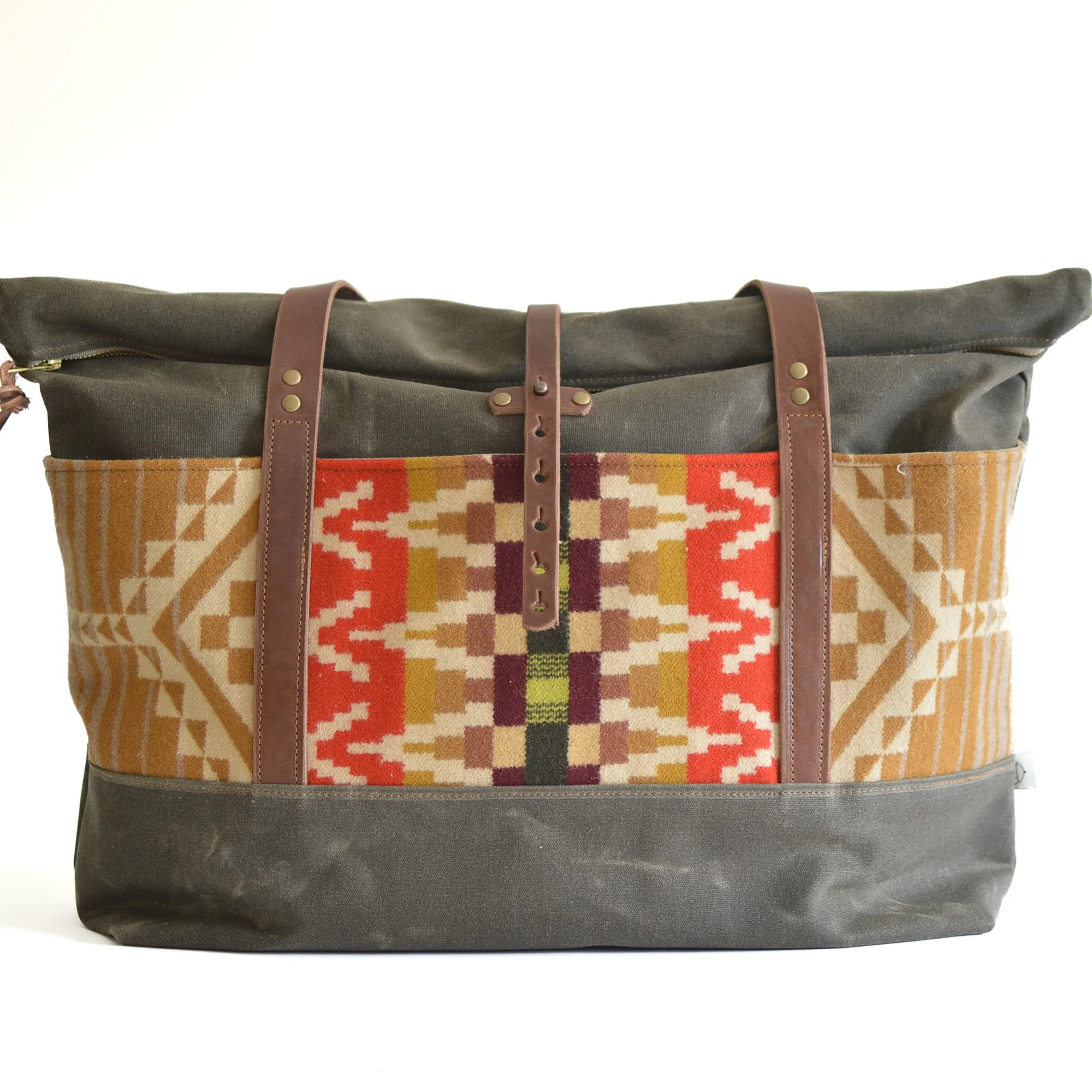 Ready for those travel getaways? The Weekender Bag made with Pendleton® Wool Fabric is the perfect travel bag or overnight bag for women. Made with a 22” YKK zipper and roll top feature, it’s the roomiest of all of our bags.