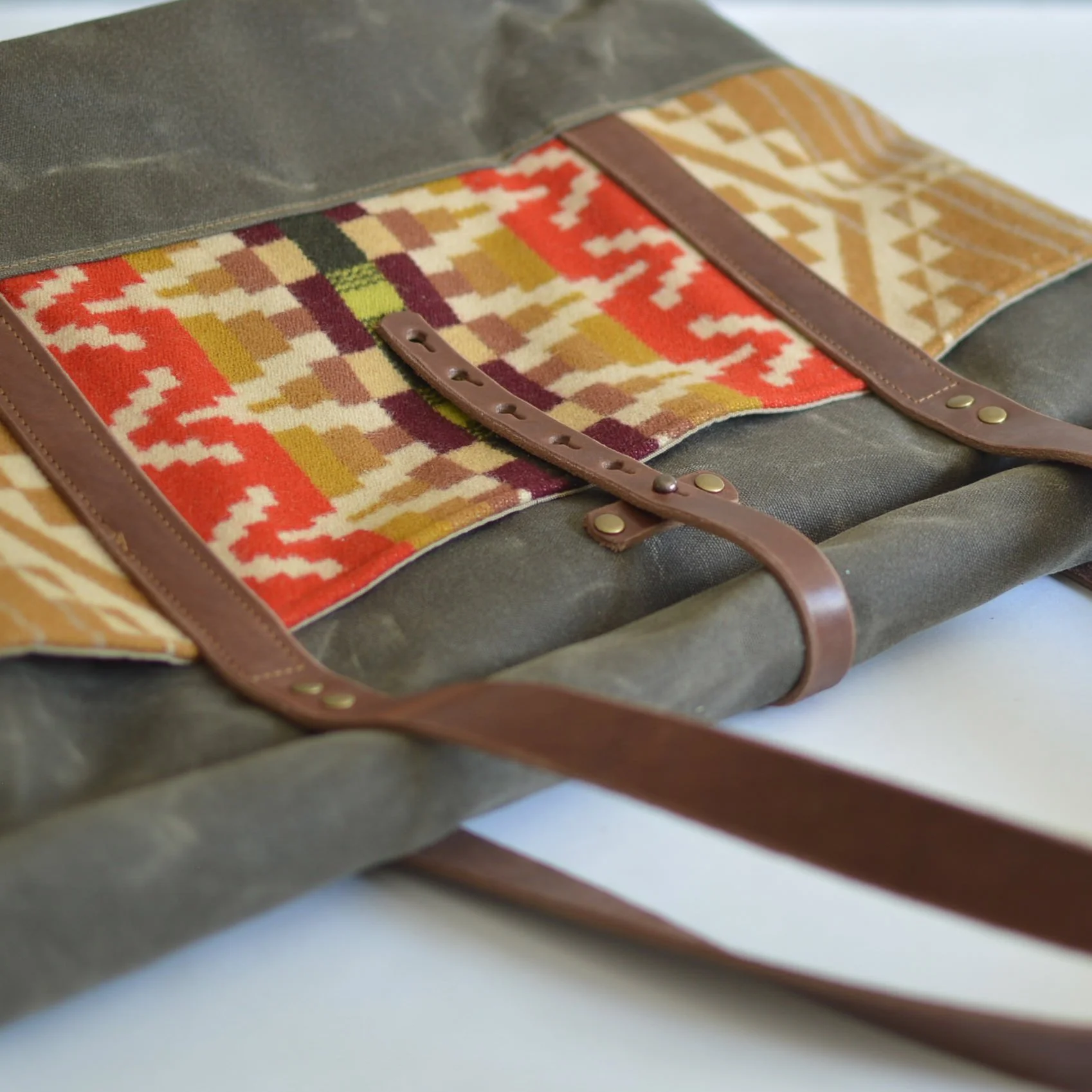 Made with a 14 oz waxed canvas, Pendleton® Wool Fabric, 7 oz Latigo Leather, and lined with a brushed cotton.